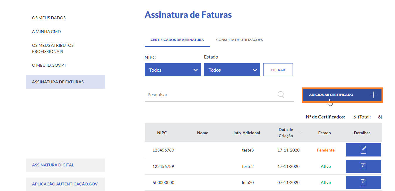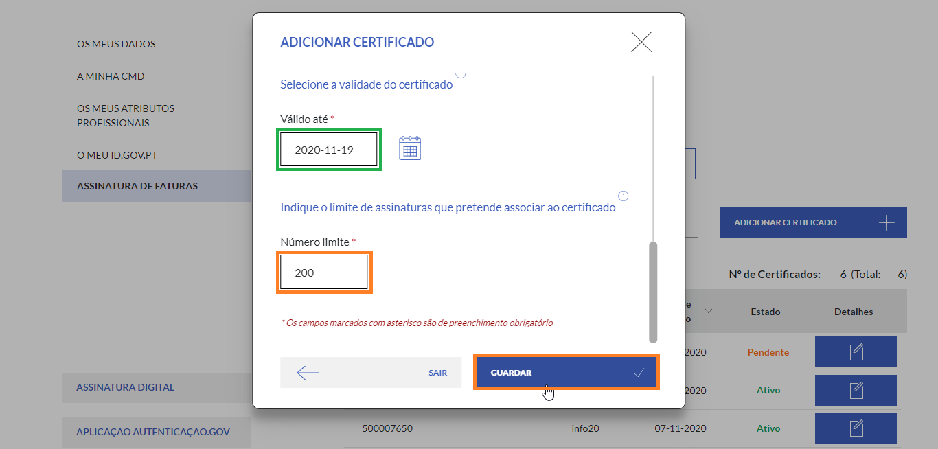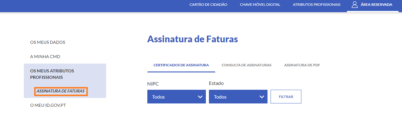 O Serviço de Assinatura de Faturas Eletrónicas (SAFE), enquadrado no Sistema de Certificação de Atributos Profissionais (SCAP), surge com o objetivo de suportar este processo de desmaterialização, estando conforme com o artigo 12.º do DL 28/2019 de 15 de fevereiro, o regulamento eIDAS (REGULAMENTO (UE) N.º 910/2014) e o Decreto-Lei n.º 12/2021. Este serviço permite ao cidadão, enquanto profissional de uma empresa, assinar digitalmente faturas eletrónicas através de um mecanismo automatizado pelo ERP Eticadata, dando garantia de autenticidade e integridade da origem desta fatura. Será utilizado o procedimento de aposição de assinatura eletrónica qualificada do SAFE, em que a chave privada de assinatura (do colaborador da empresa com poderes para emitir e assinar faturas) é guardada centralmente de forma segura bem como os tokens associados. O detentor da chave privada de assinatura, ao configurar/renovar este serviço, está a autorizar a utilização da mesma pelo software de faturação, enquanto esta for válida, nos processos internos de assinatura de documentos no software por via manual, sendo possível a utilização por via automática/API, desde que o detentor da chave privada de assinatura o manifeste através de opção própria para esta modalidade em particular, os processos automáticos que podem assinar os documentos consistem nos mecanismos de envio de email automáticos, quando configurados, despoletados pela gravação dos movimentos elegíveis. O SAFE está inserido no ecossistema Autenticacao.Gov. Este processo é iniciado pelo ERP Eticadata que comunica com o Fornecedor de Autenticação(FA) e este comunica com o SAFE. A assinatura eletrónica está disponível para os seguintes movimentos: Na ficha de empresa, no menu lateral no grupo Gestão Comercial, deverá selecionar a opção Documento Eletrónico. De seguida, deverá selecionar a parametrização Assinatura Eletrónica. Na ficha de empresa, no menu lateral no grupo Gestão Comercial, deverá selecionar a opção Documento Eletrónico. De seguida, deverá selecionar a parametrização Assinatura Eletrónica. Antes da configuração do ERP, deverá ativar a chave móvel digital e ativar os atributos profissionais. Para usar este tipo de certificados, é necessário preencher os seguintes campos: Para ativar a CMD com o cartão digital, siga os seguintes passos: Após este processo, o código foi validado e a chave móvel digital foi ativada com sucesso. Para ativar a CMD no Portal das Finanças, siga os seguintes passos: A chave móvel foi ativada com sucesso. Irá receber em breve uma carta com o PIN provisório. Após receber a carta com o PIN provisório, deverá indica um novo PIN na primeira utilização da chave móvel. De seguida, irá receber um código que deverá introduzi-lo na plataforma. Para ativar os atributos, siga os seguintes passos: A associação de atributos foi concluída com sucesso.Enquadramento Legal