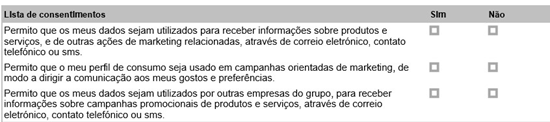| Nome | Permite definir o nome do tipo de consentimento. |